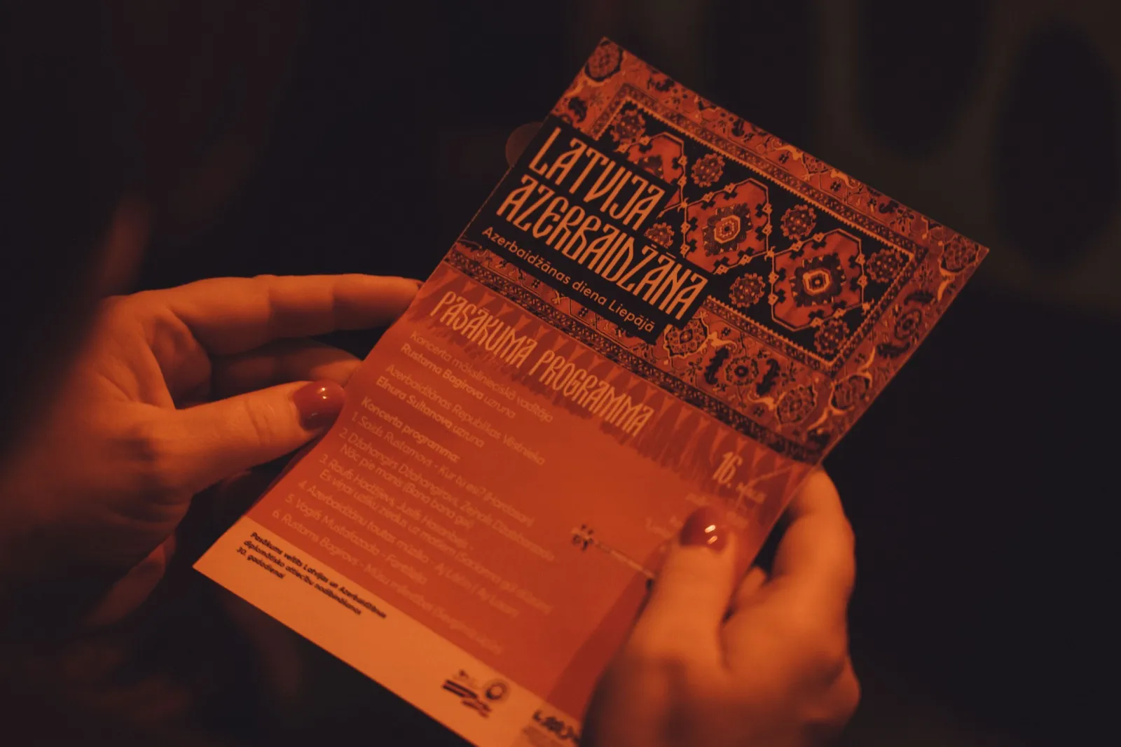Pedagoga Rustama Bagirova vadībā sagatavota koncertprogramma "Azerbaidžānas diena Liepājā", kurā tiks atskaņoti septiņi skaņdarbi. Trīs skaņdarbi, tostarp R. Bagirova skaņdarbs "Mīlestības vārdā" ir īpaši aranžēts ansambļa "Amber Strings" sastāvam. Pārējos skaņdarbus atskaņos LMMDV ritma grupa R. Bagirova vadībā. Koncertā piedalīsies arī Andris Buiķis (bungas), Harijs Ločmelis (trompete), Marija Rebčinska (bass) un Sniedze Kārkliņa (flauta), savukārt Petra Griškēviča (vokāls) vienu skaņdarbu izpildīs azerbaidžāņu valodā. Koncerts vienlaikus tiek veidots kā meistarklase džeza nodaļas audzēkņiem. Koncerta vizuālo noformējumu veido Zane Kornhubere.