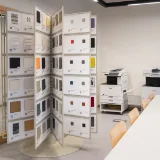 Materiālu bibliotēka pieejama Alejas ielā 18, bibliotēkā. Tā ietver skaidru, pārskatāmu paraugu sistēmu, nodrošinot gan klātienes, gan digitālu pieejamību. Tā papildināta ar materiālu katalogiem, QR kodiem ar informāciju par ražotājiem, kā arī atjaunota lietotāja rokasgrāmatu, kas palīdz orientēties plašajā materiālu klāstā.